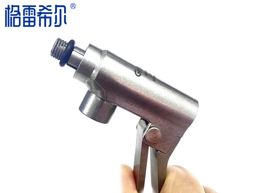 第一步 G80NL手柄式,捏紧,爪牙伸出并处于收缩状态。对准待测工件管口,注意螺纹位置。 | 第二步 向测试件内螺纹接口方向插入接头,到螺纹端面完全接触主密封圈。 | 第三步 松开G80NL把手,金属夹爪会在弹簧张力作用下张开,从而与工件内部螺牙契合,完成密封 |